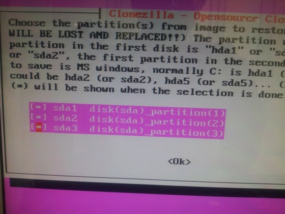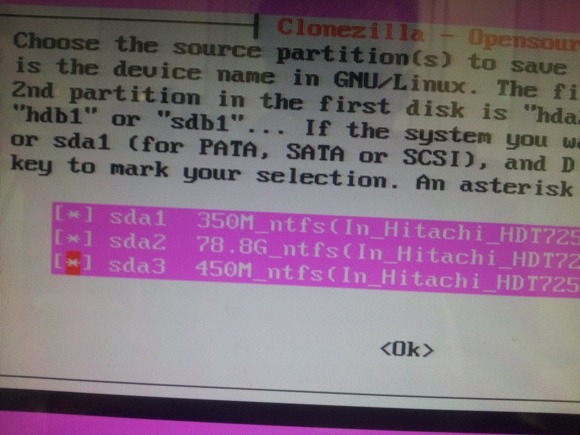 이제 백업 할 파티션 입니다 sda1는 부트 sda2 OS sda3는 복구 파티션 입니다 그냥 다 했네요 ㅎㅎ;;