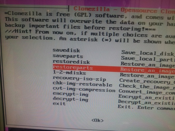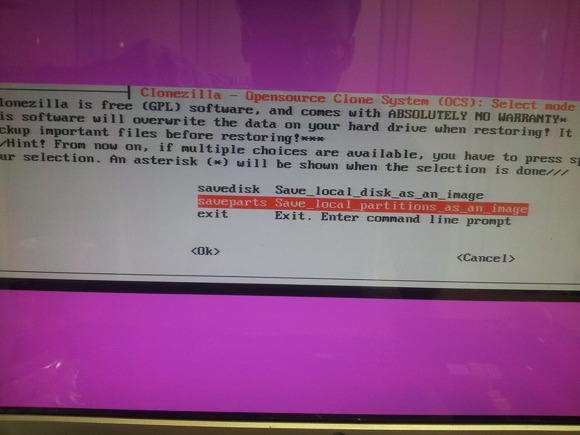 파이와 같이 파티션을 백업 해야 하니 파티션을 골라 줍니다.. saveparts 만약 이미 백업 되어 있다면 아래..