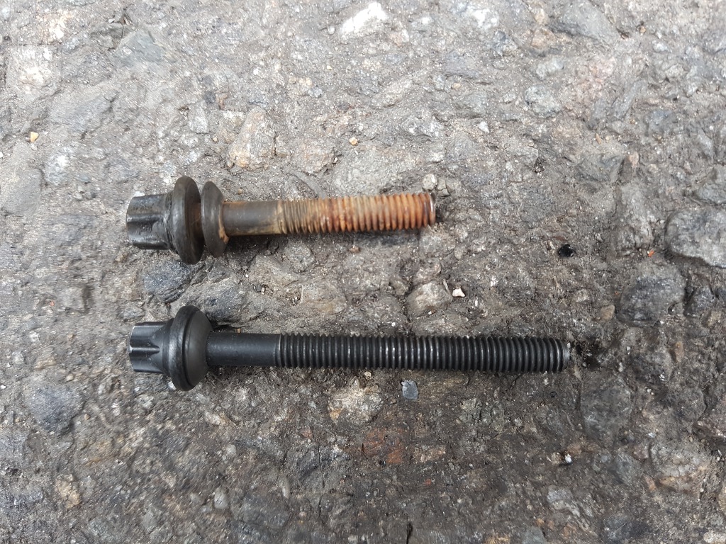 신품 볼트와 부러지면서 짧아진 볼트의 비교사진입니다