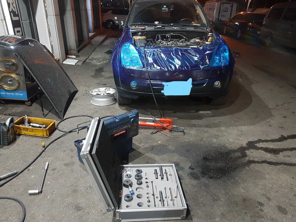 일단 저희 샵에서는 인젝터 고착으로 문제가 됬을경우 유압공구의 작업모습입니다