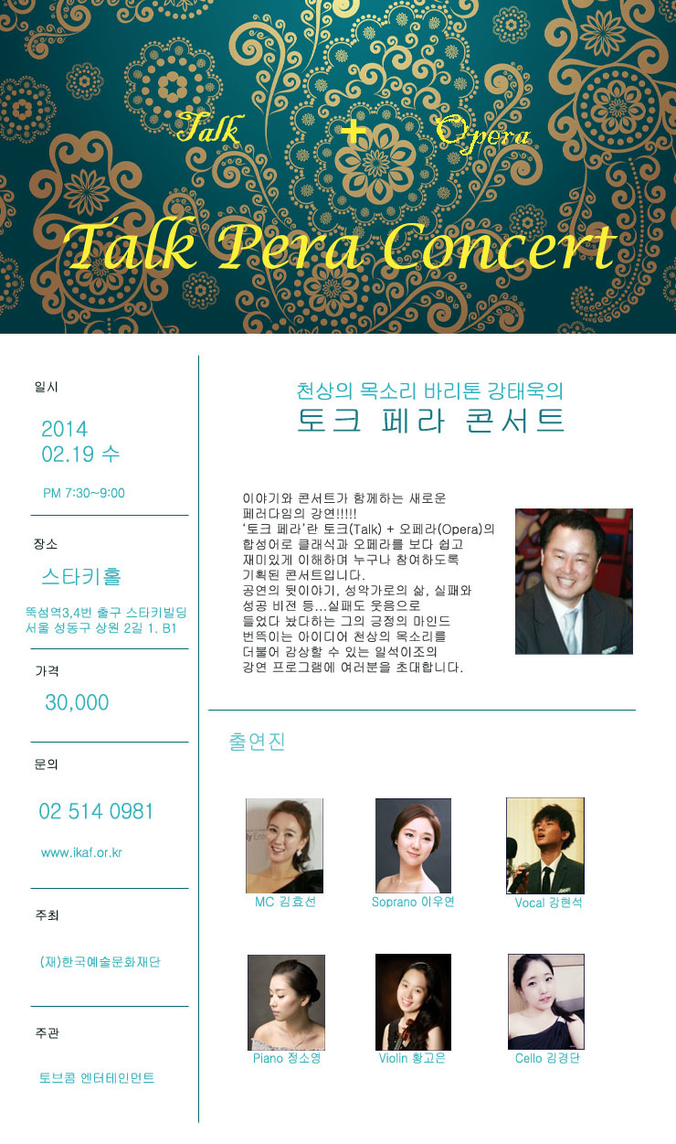 천상의 목소리 바리톤 강태욱의 토크페라 코서트!