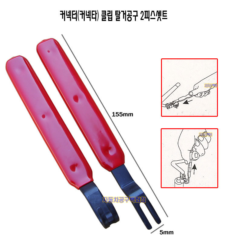 특징:쉽게 빠지지 않는 커넥터클립을 제거하는 특수공구로 후크끝 부분이 뾰족하여 작업성능이좋고 미끄러짐방지하기위해 고무브라켓채택