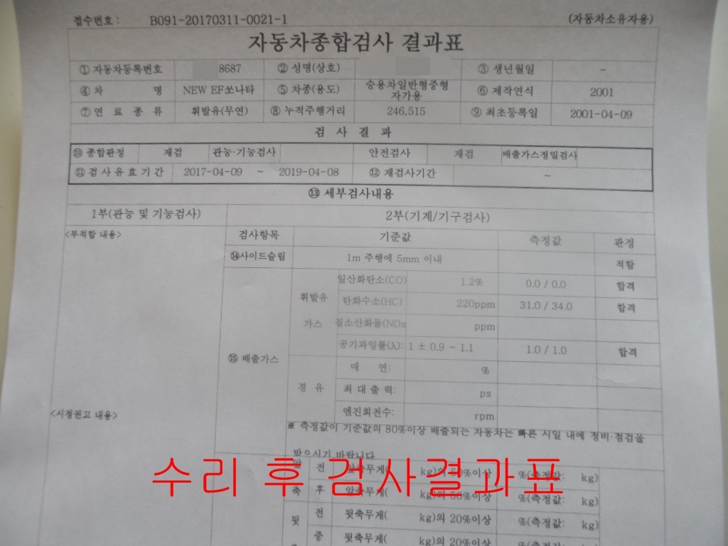 잘 정비하여 검사 완료 하였으니 잘 사용하십시요.