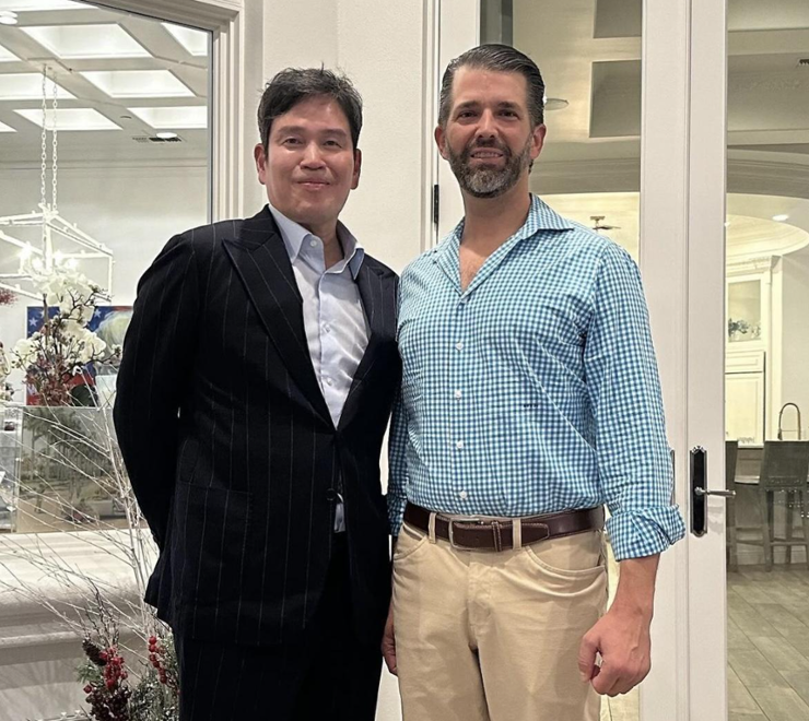 지난 1월에는 트럼프 전 대통령 임기 동안 장인의 선임고문과 미국혁신처 국장을 역임한 이방카의 남편 재러드 쿠슈너 옆에 서 있는 사진도 업로드했다.