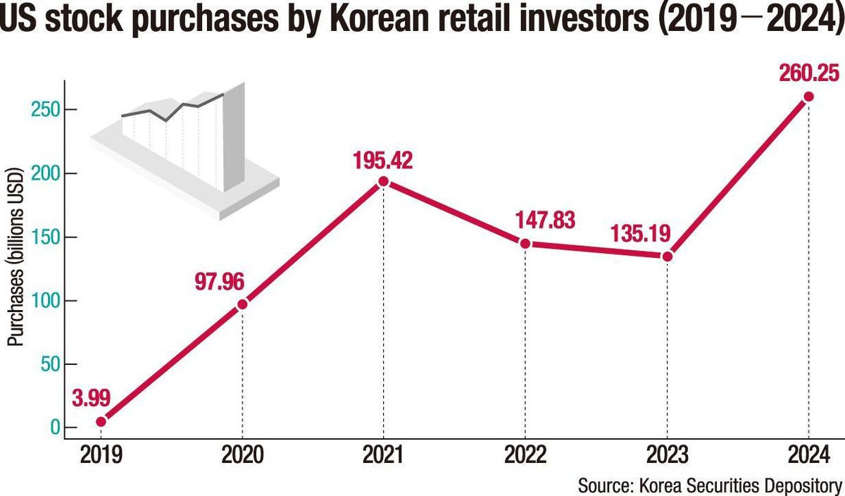 Koreans purchased $260.25 billion in U.S. stocks through KSD in 2024, a surge of nearly 6,400 percent from 2019.