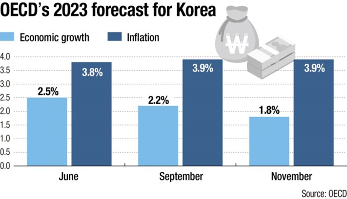 OECD slashes Korea's growth forecast to 1.8% 2023년 한국 성장률 전망치 1.8%로 하향