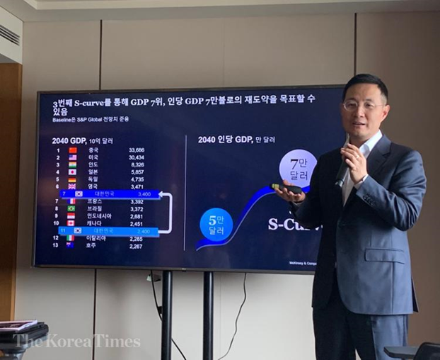Korea is forecast to grow into the world's seventh-largest economy by 2040, with per capita gross domestic product (GDP) expected to surpass $70,000, according to the head of McKinsey & Company in Korea on Thursday.