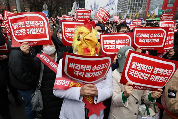 시위대는 의사에 대한 탄압을 중단하라 보건의료 질 악화에 책임을 지라 등의 현수막을 내걸고 의대 정원을 서둘러 늘리면 의료 시스템이 붕괴된다 등의 구호를 외쳤다.