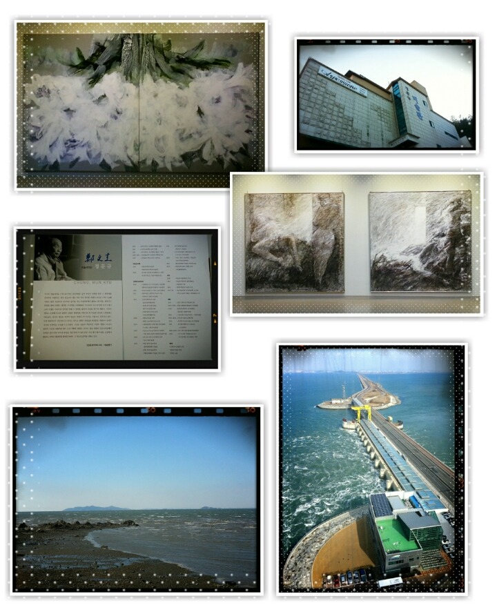 정문규 미술관의 관장님은 우리 나라 누드화를 이끄신 분입니다. 90년도 초기부터 약 6년간 위암으로 고생을 하셨다고요. 그리고 누드화를 접고 풍경화를 그리셨답니다. 백합은 첫 작품이라 특별히 애착이 간다 하셔서 허락을 받고 사진을 찍었답니다. 보통 작품을 사진 찍는것은 허용하지 않는데 혼자 관람하게 되어 여러 이야기른 들을수 있었고 사진도 허락을 받을수 있었답니다. 시화호를 건너는데 물이 가득 찼더군요. 바닷가 풍경도 좋았어요.