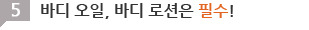 바디로션에 오일을 섞어 바르거나 따로 발라보도록 하세요.