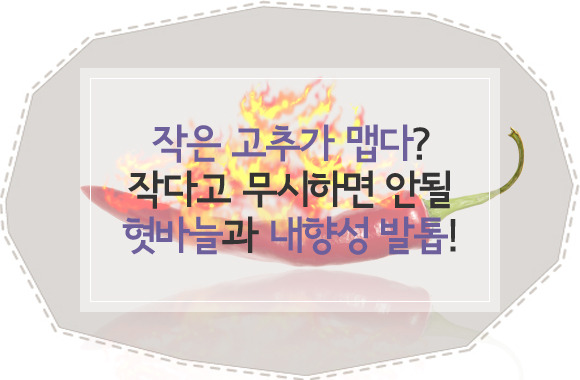 혀 표면에 돋아나는 혓바늘, 살을 파고드는 내향성 발톱. 이 질환들은 살면서 쉽게 겪게 되는 증상인데요. 하지만 다른 질환과 비교했을 때 아주 작은 질환으로 여겨지고 대수롭지 않게 넘길 수 있습니다. 그런데 그러기엔 그 통증들은 실생활에 불편을 줄 만큼 매우 크죠? 작다고 무시하면 큰코다치는 혓바늘과 내성향 발톱. 왜 우리를 괴롭히는 걸까요?