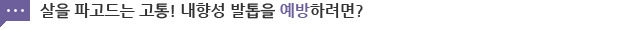 내향성 발톱을 겪어본 사람들만큼은 그 고통이 얼마나 큰지 잘 알고 계시겠죠?