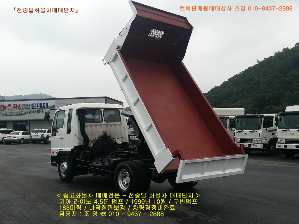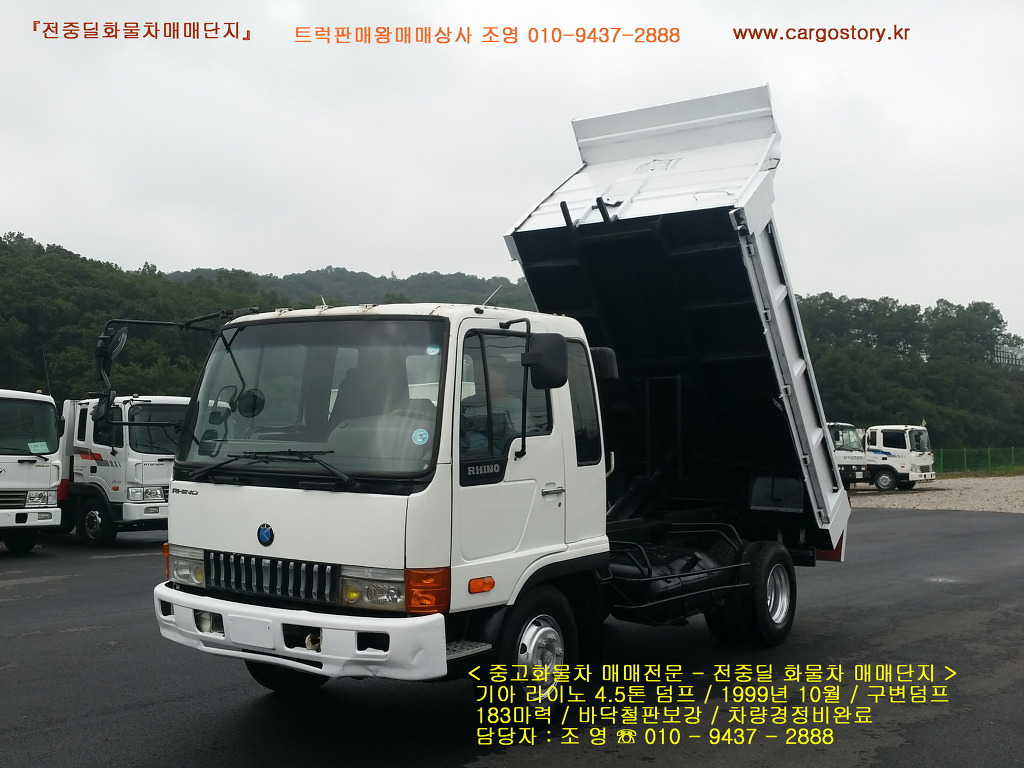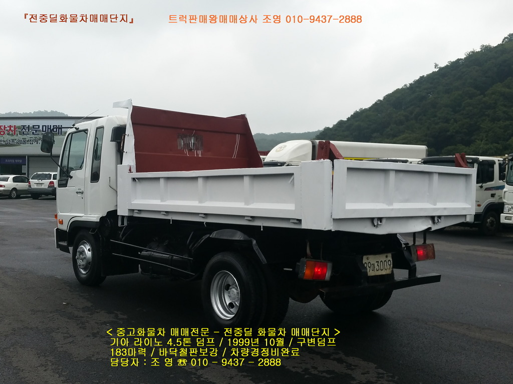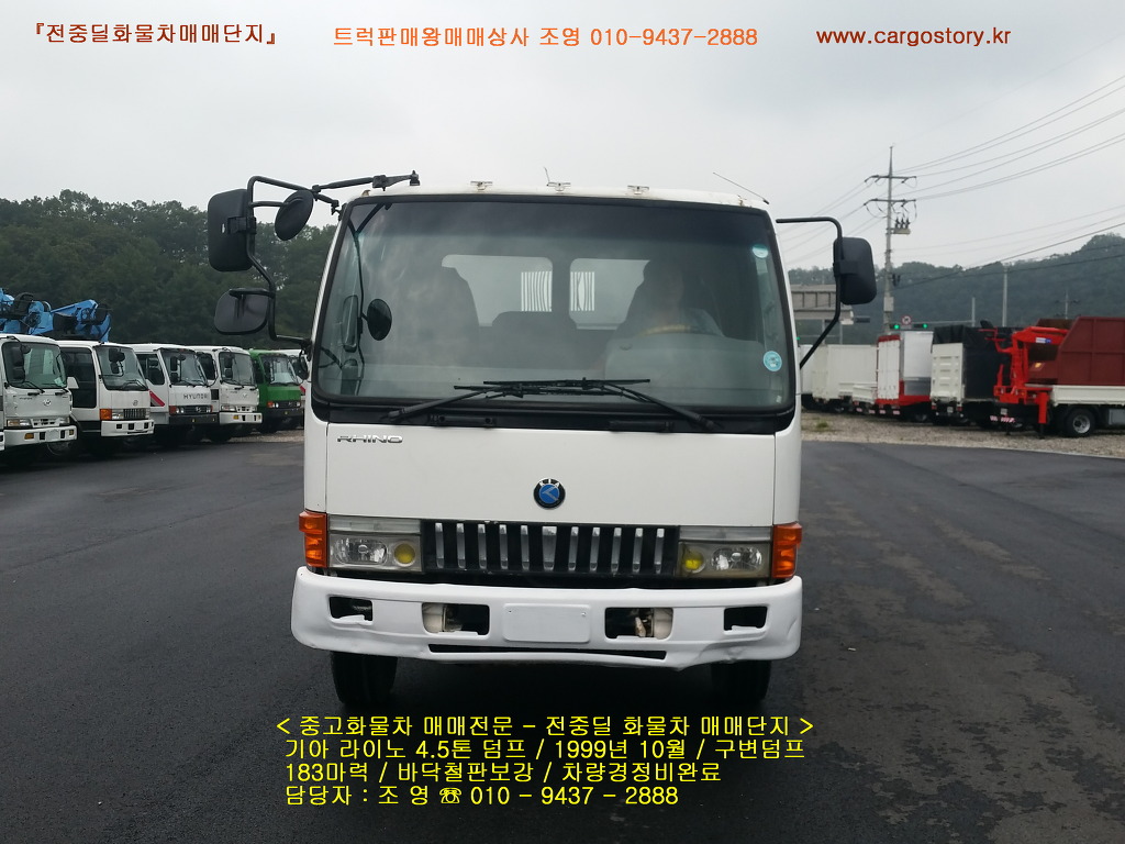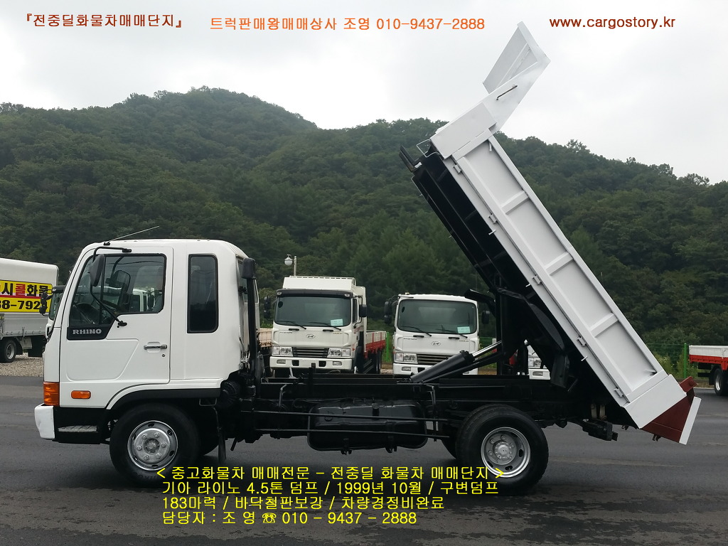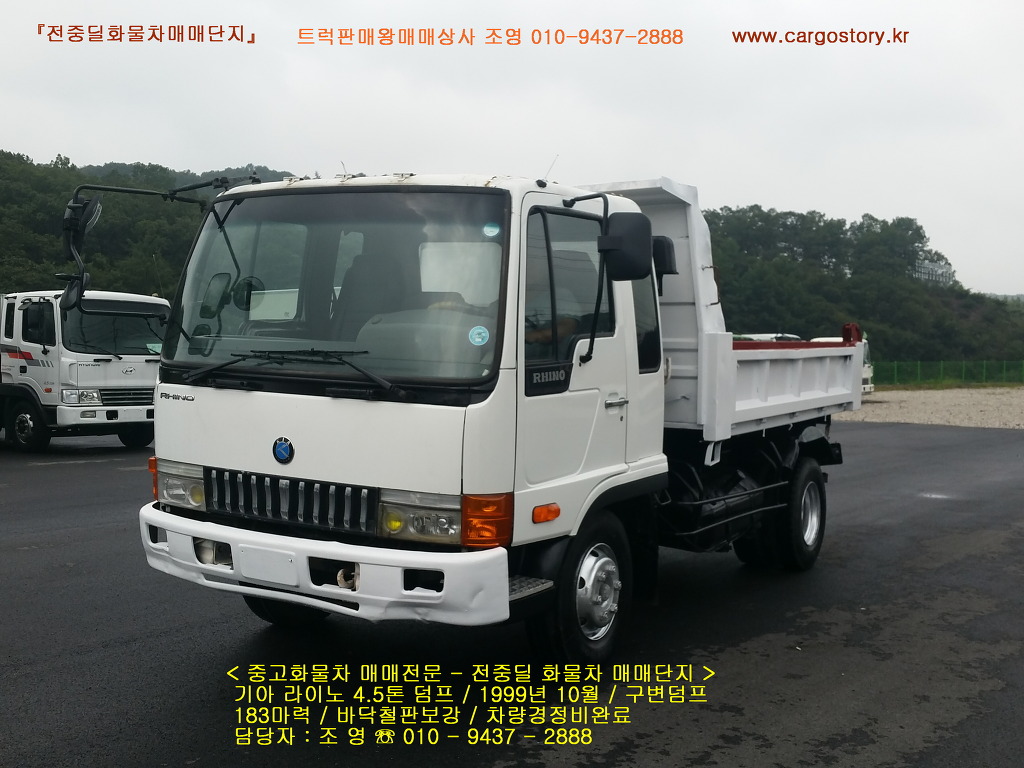 1999년식 기아 라이노 4.5톤 덤프(구변덤프),183마력, 바닥철판 보강된 차량을 소개하였습니다.