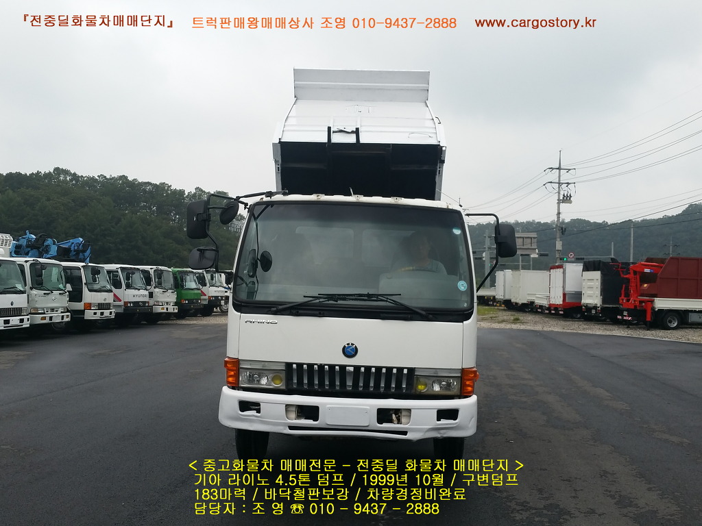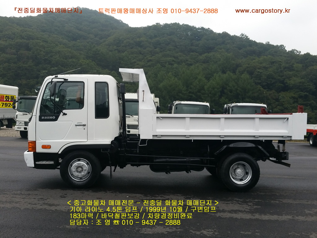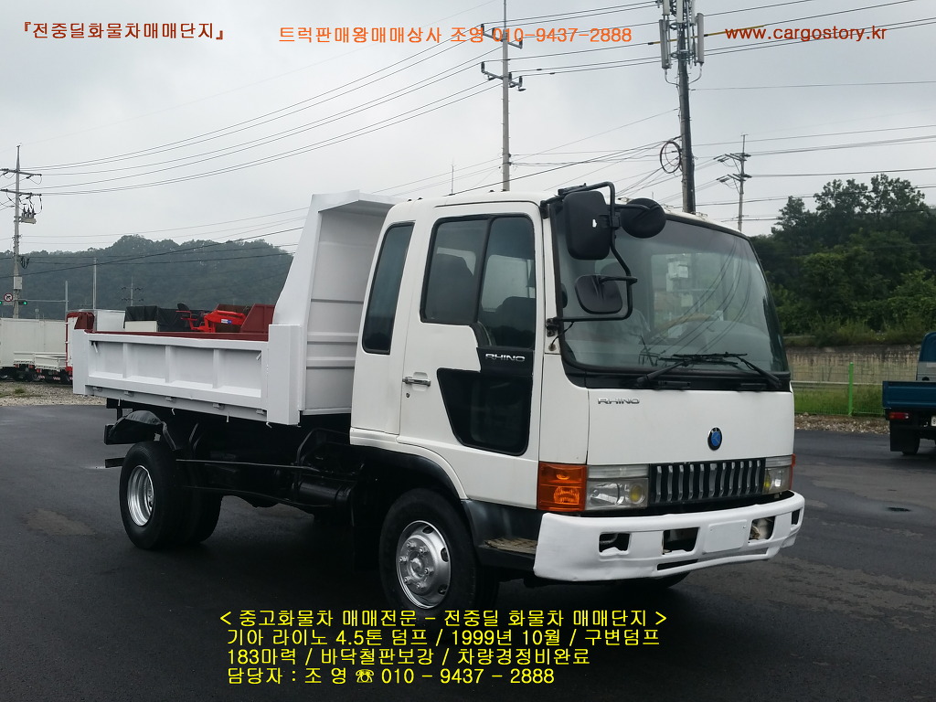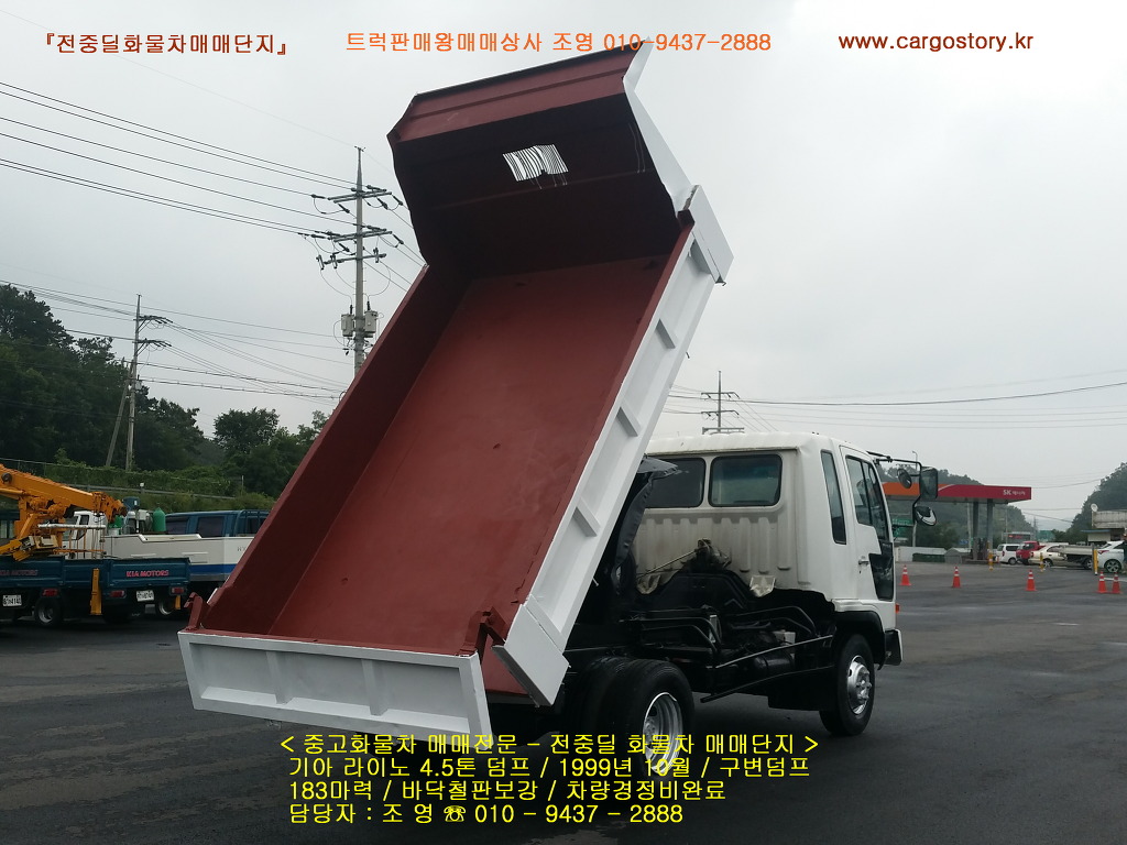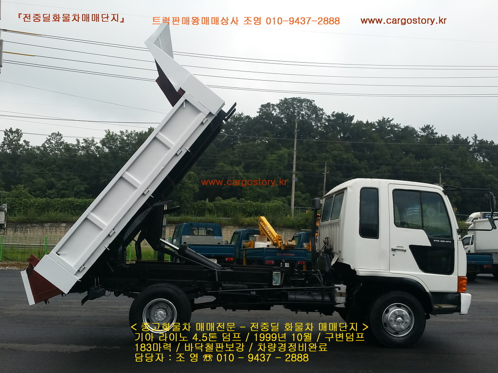 1999년식 기아 라이노 4.5톤 덤프(구변덤프),183마력, 바닥철판 보강된 차량을 소개하였습니다.