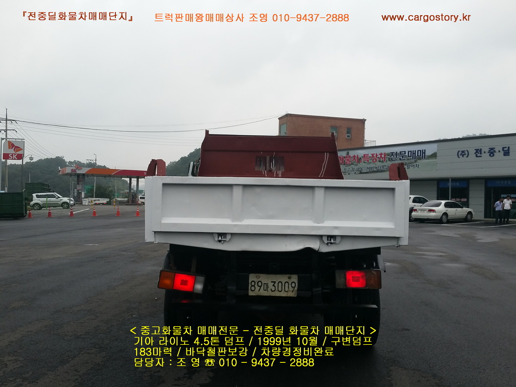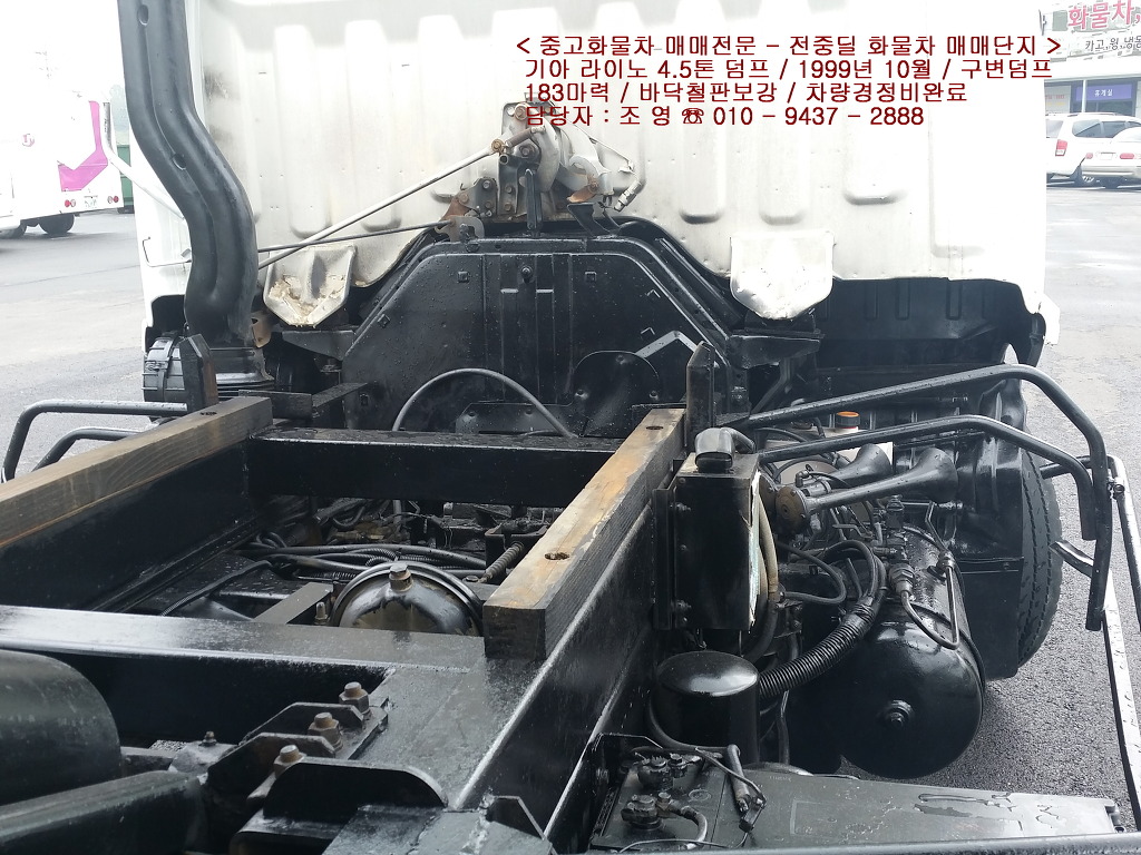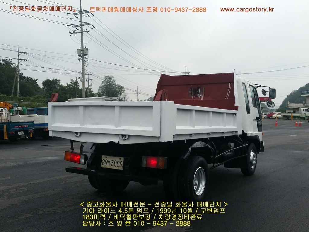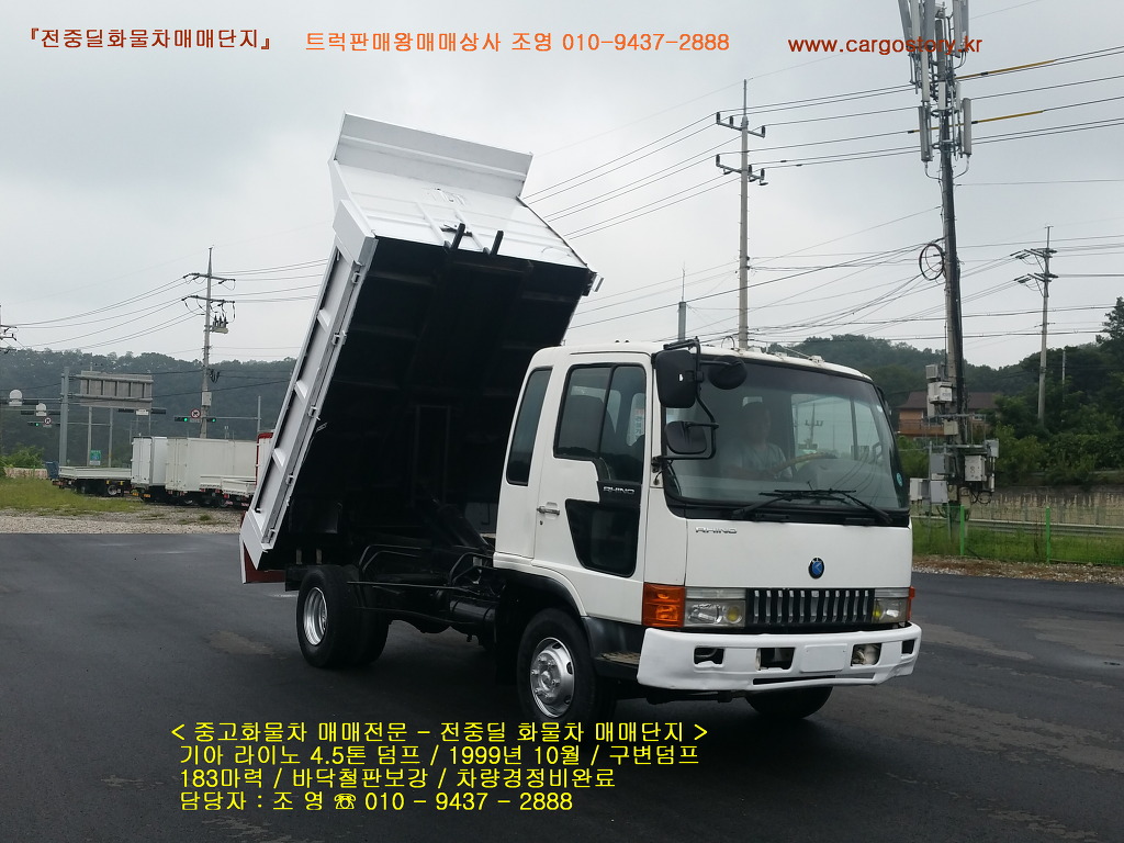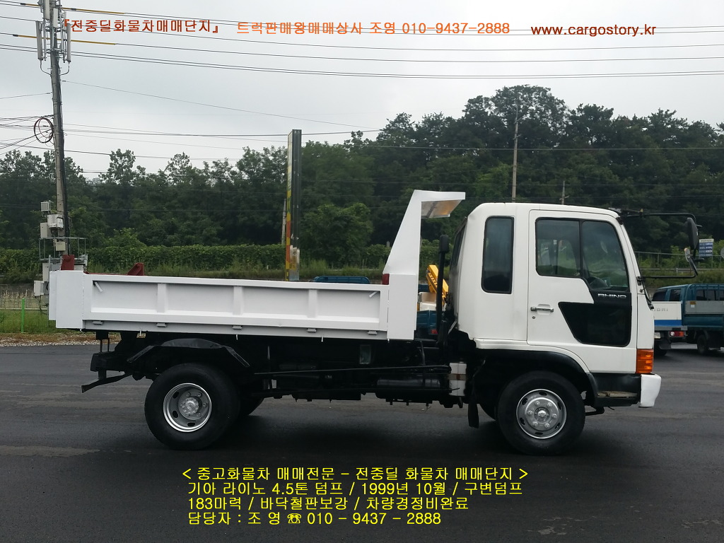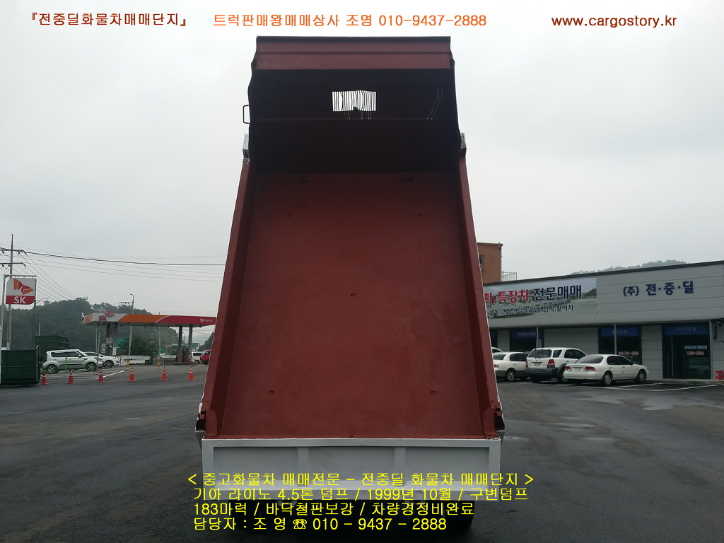 1999년식 기아 라이노 4.5톤 덤프(구변덤프),183마력, 바닥철판 보강된 차량을 소개하였습니다.