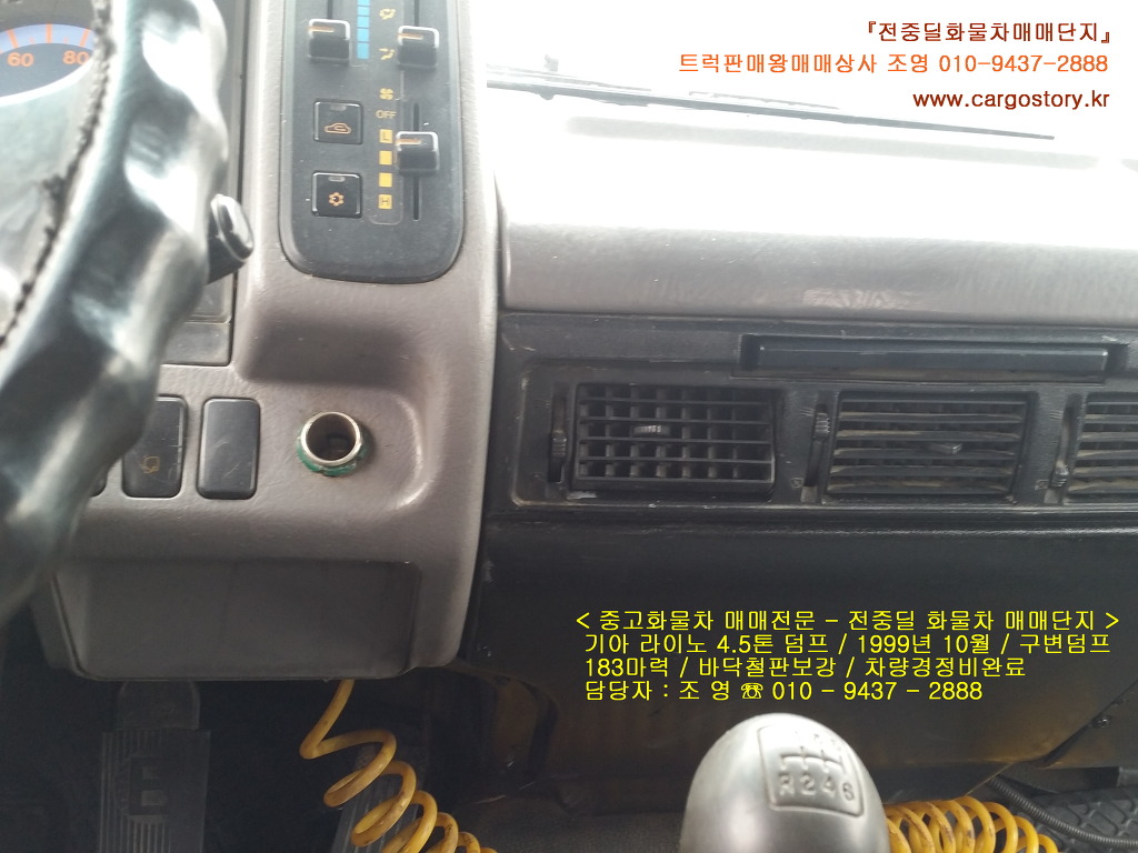 <1999년식 기아 라이노 4.5톤 덤프(구변덤프) 내부 운전석모습>
