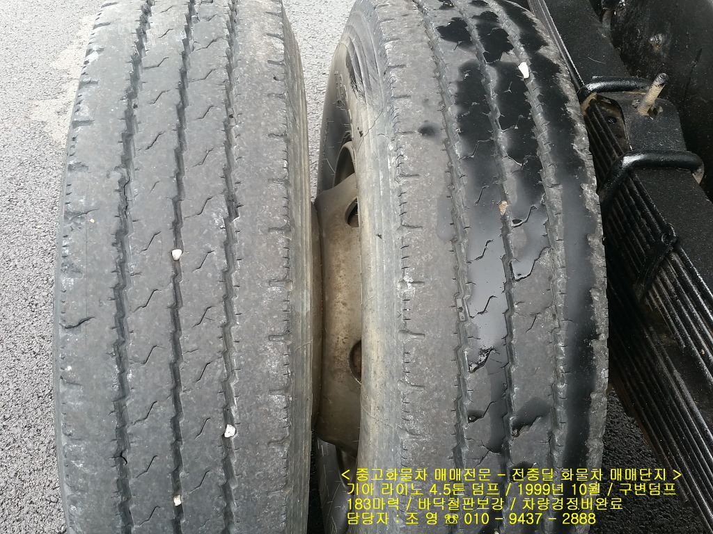 <1999년식 기아 라이노 4.5톤 덤프(구변덤프) 뒤 타이어 모습>