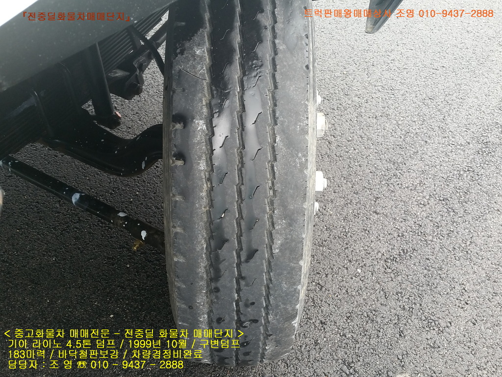 <1999년식 기아 라이노 4.5톤 덤프(구변덤프) 앞타이 모습>