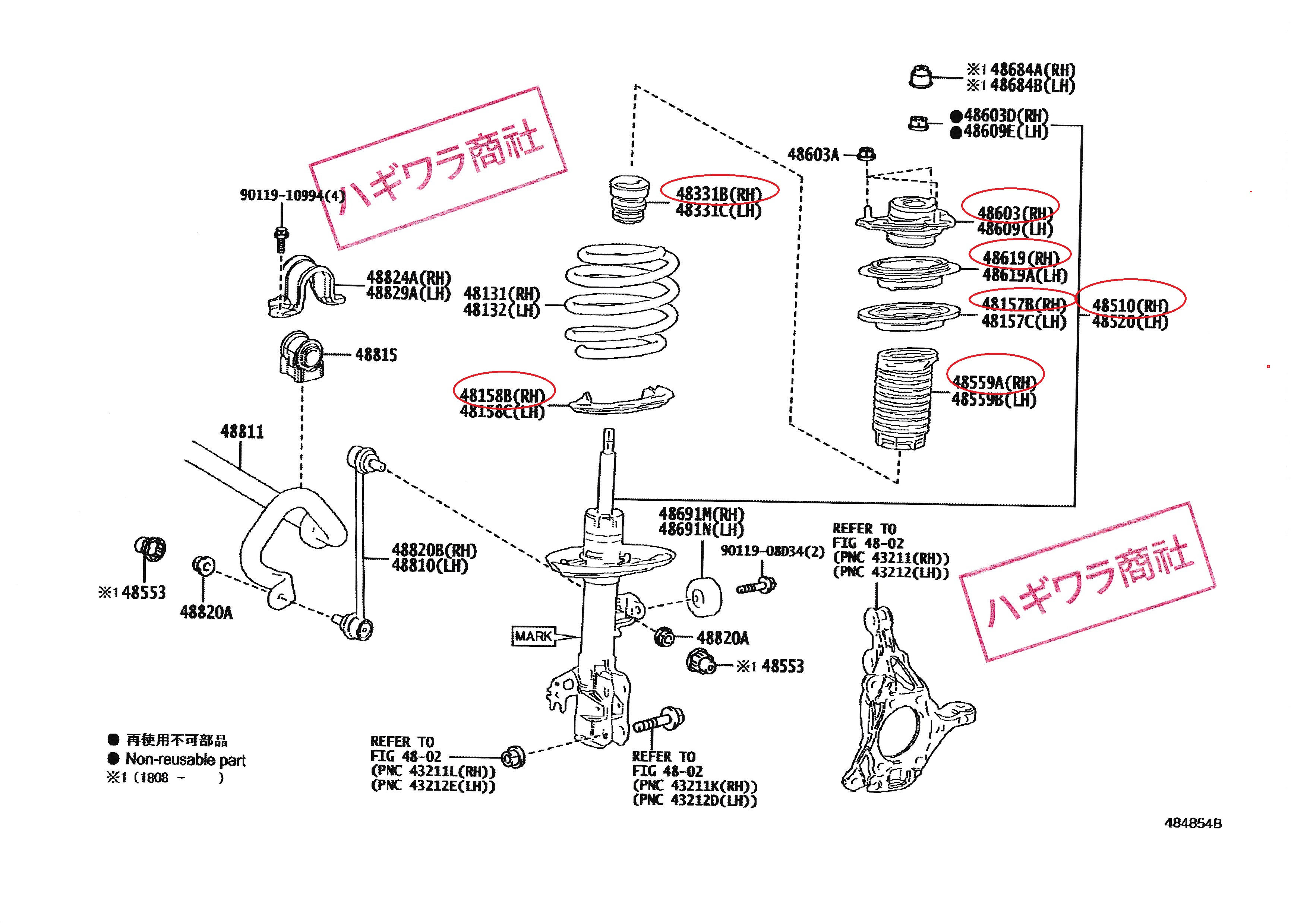 품번은 48510-80863 , 48609-33260 , 48619-33010 , 48157-33090 , 48559-33020 , 49331-33100 , 48158-33110 입니다.