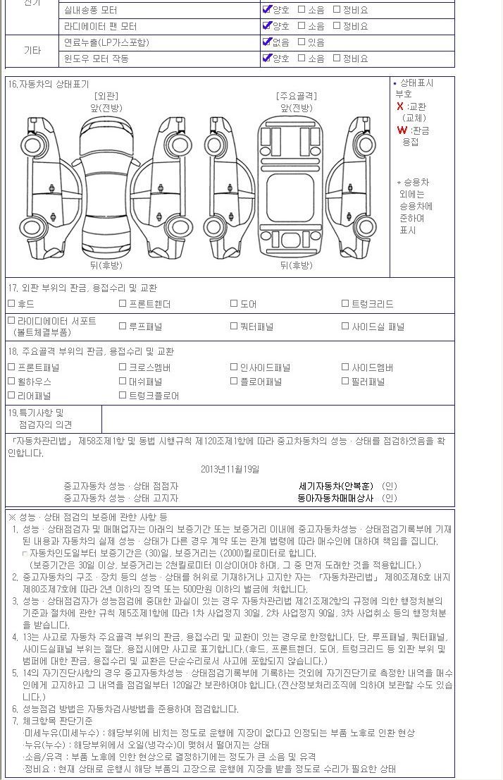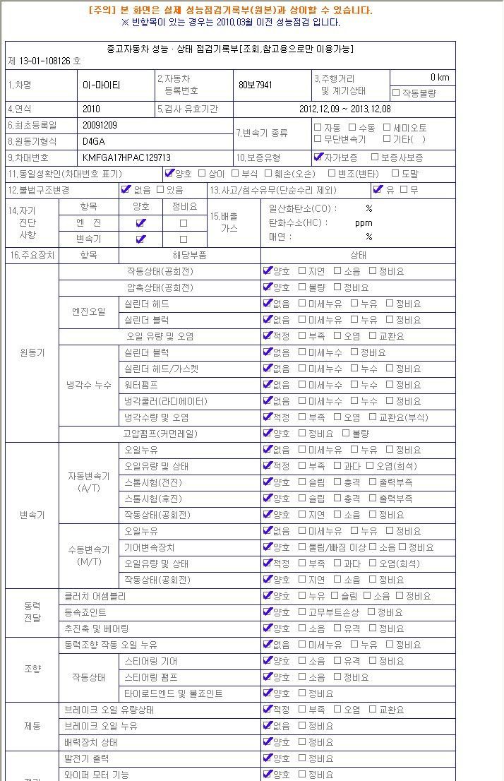 성능점검 내용 제시합니다.