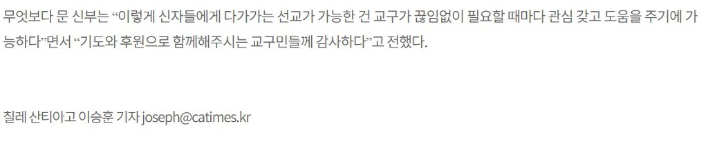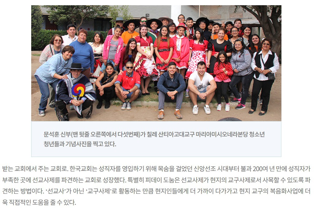 가톨릭신문 수원교구 창간 10주년을 맞이하여 지난 9월에 수원교구 해외선교후원회의 지원으로 가톨릭신문사에서 칠레 선교지를 방문하였습니다.