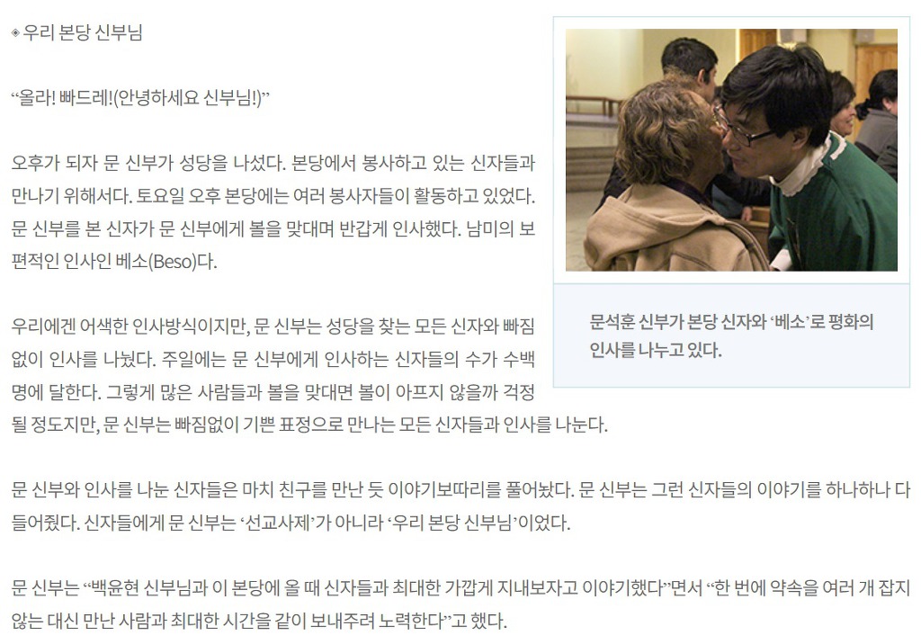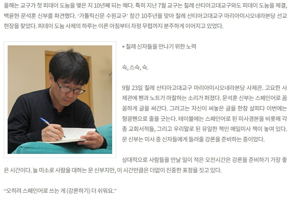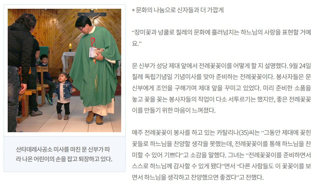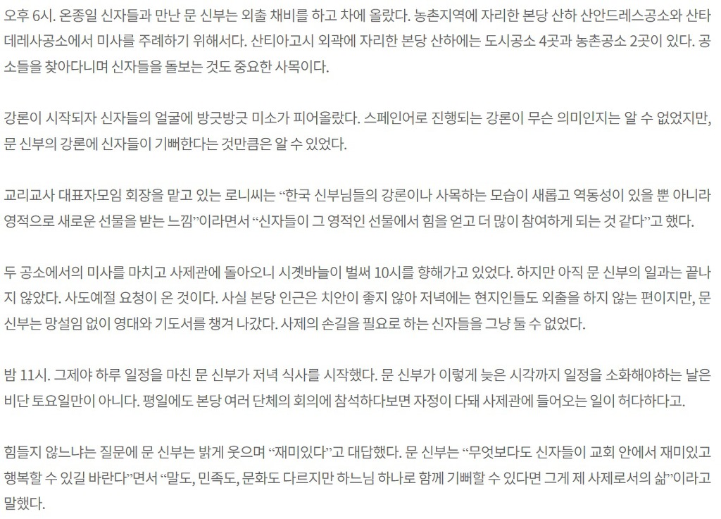 칠레 선교사제이신 문석훈 신부님의 하루의 삶을 밀착 취재한 기사입니다.