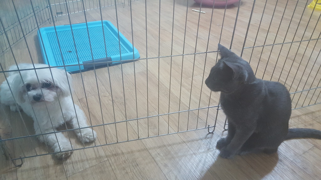 울집 강쥐는 풀어놓으면 사방에 영역표시를 하는 바람에 어쩔 수 없이 울타리 안에서 생활을 합니다 그 안에선 배변판에 볼일을 보는데 밖에만 내 놓으면 통제불가라...그에비해 배변습관이 확실한 냥이 후추는 울타리 밖에서 자유롭게 생활을 하지요 냥이만의 특권 이랄까...가끔 두 녀석을 만나게 하면 투닥거리지만 막상 떨어져 있으면 옆에 가서 물끄러미 쳐다 보고 있네요^^