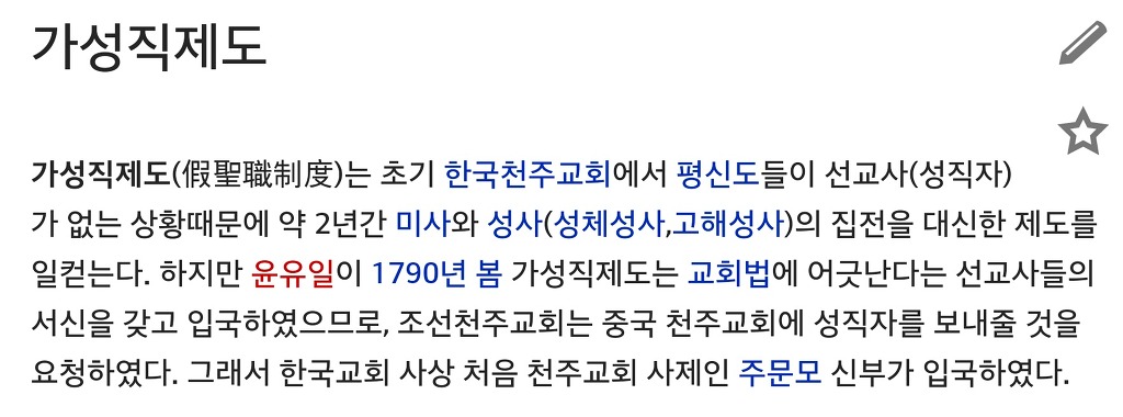 ★모방 성직제도 / 가 성직제도: 초기 한국천주교회에서 평신도들이 약 2년간 미사와 (성체/고해) 성사를 실행, 선교사/신부님 역할을 대신한 제도이다.