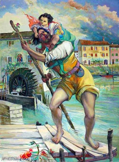 순례자나 여행객들을 자기 어깨에 올려 태우고 건네주는 일을 하였다.