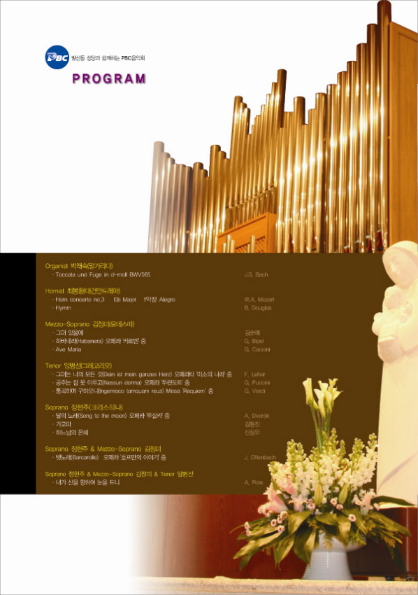 발산동성당과 함께하는 1월 PBC음악회 안내 작성자yangmaxi|작성시간11.01.15|조회수130 목록 댓글 0 글자크기 작게가 글자크기 크게가 다음검색 현재 게시글 추가 기능 열기 북마크 공유하기 신고 센터로 신고 댓글 댓글 0 댓글쓰기 답글쓰기 댓글 리스트