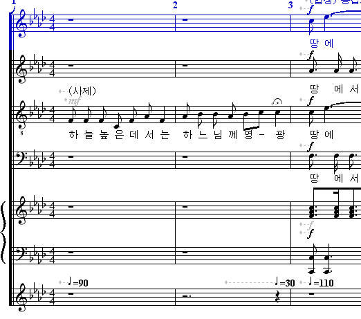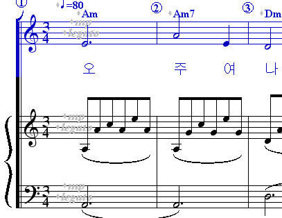 템포가 없는 악보에서 템포를 넣는 요령부터 알려 드리겠습니다.