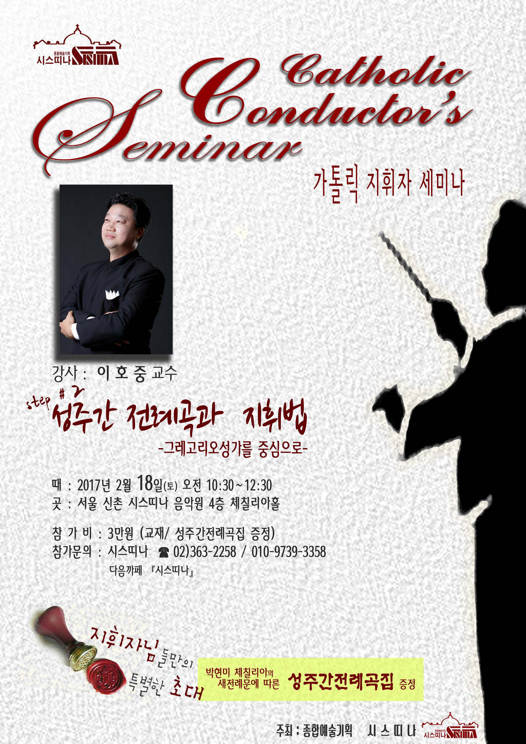 서울 신촌 시스띠나 음악원 4층 체칠리아홀에서 진행됩니다.