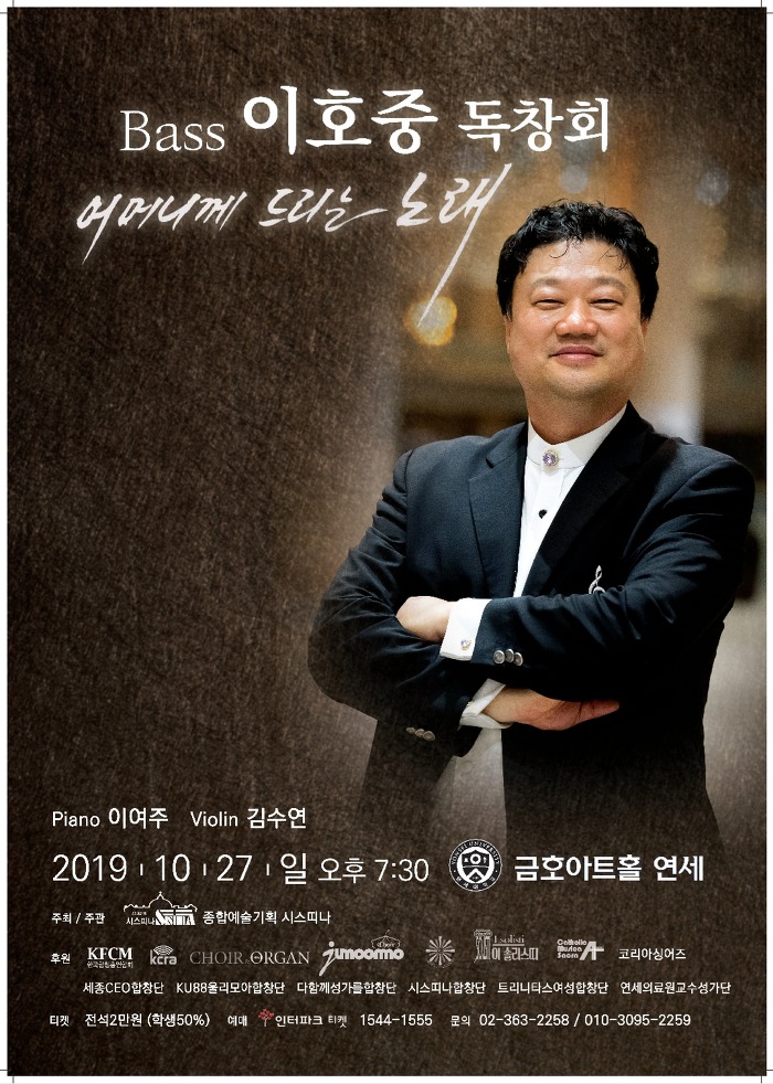 금호아트홀 연세에서 '베이스 이호중'의 독창회가 열린다.