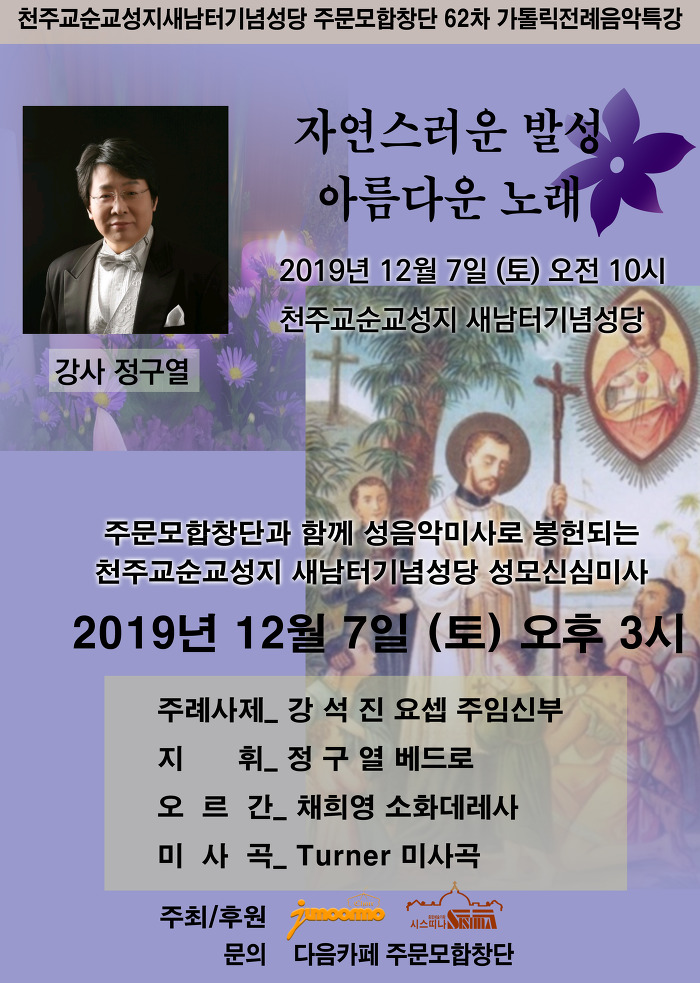 다음달 12월 주문모합창단 가톨릭전례음악특강 강사로 오시는 콘솔라리움합창단 지휘자 바리톤 정구열 베드로