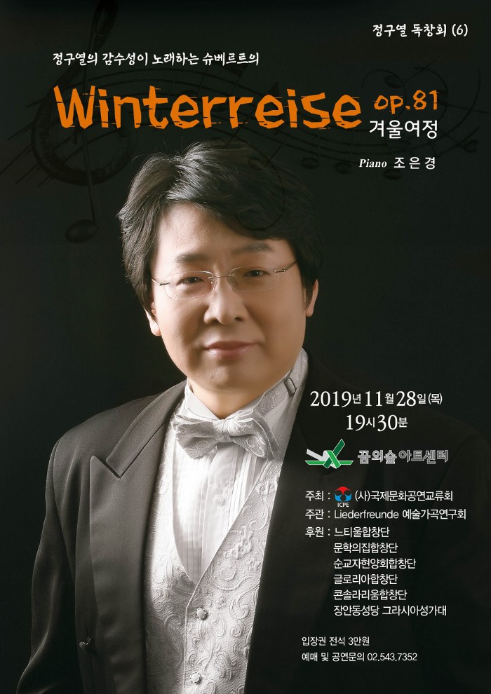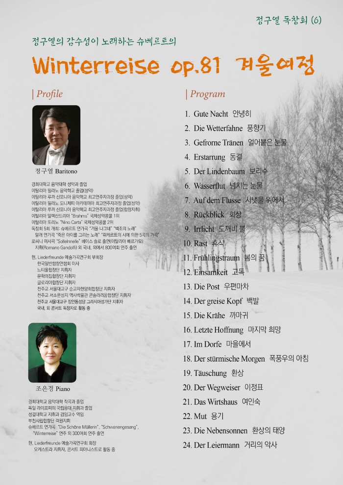 선생님께서 28일 목요일에 꿈의숲아트센터에서 "슈베르트의 겨울여정"을 주제로 독창회를 갖습니다^^