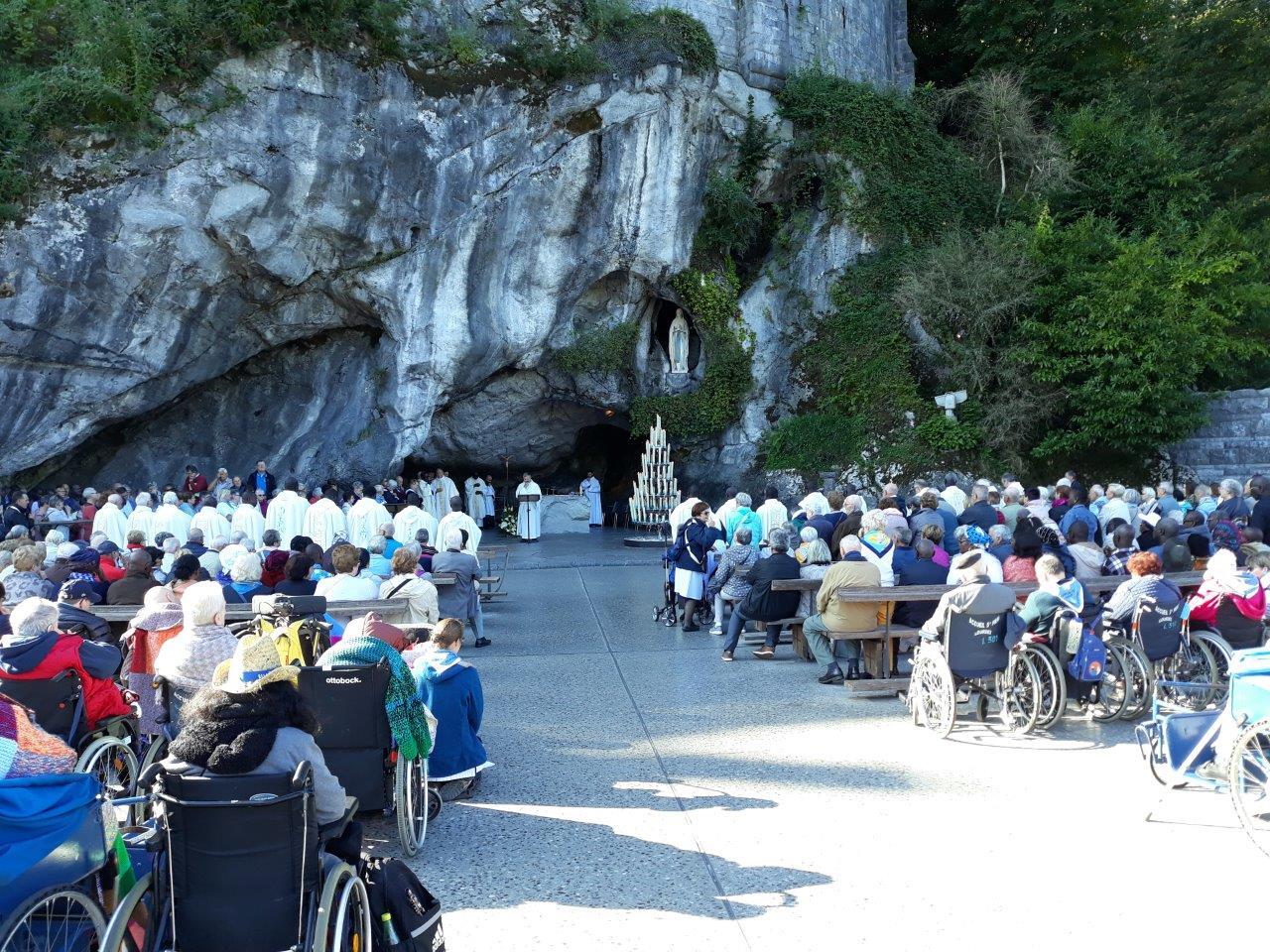 A portion of the candlelight procession at Lourdes during our 2012 Pilgrimage to the Marian Shrines of Portugal, Spain and France...