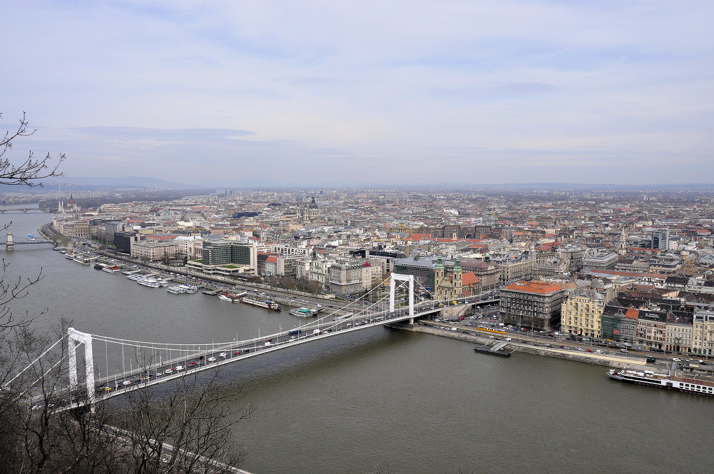 Erzsébet hid(Elisabeth Bridge) 오스트리아의 프란츠 요제프 황제가 황후인 에르제베트의 헝가리 여왕 즉위를 기념하여 건립한 다리로 흰색은 황후의 아름다움을 상징한다.