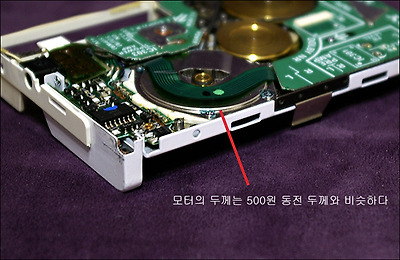 마이마이에 내장된 두꺼운 모터. 일본 제품과 내부를 비교하니 기술의 차이를 실감.