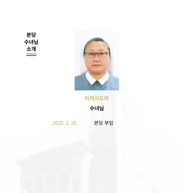 이이시도라 수녀님 작성자문화홍보부|작성시간25.12.26|조회수57 목록 댓글 0 글자크기 작게가 글자크기 크게가 다음검색 현재 게시글 추가 기능 열기 북마크 공유하기 신고 센터로 신고 댓글 댓글 0 댓글쓰기 답글쓰기 댓글 리스트