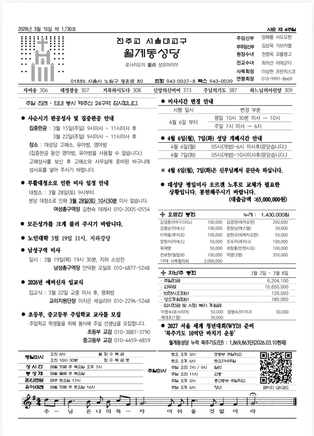 2026년 03월 15일 사순 제4주일 작성자홍보분과1|작성시간26.03.15|조회수203 목록 댓글 0 글자크기 작게가 글자크기 크게가 다음검색 현재 게시글 추가 기능 열기 북마크 신고 센터로 신고 댓글 댓글 0 댓글쓰기 답글쓰기 댓글 리스트