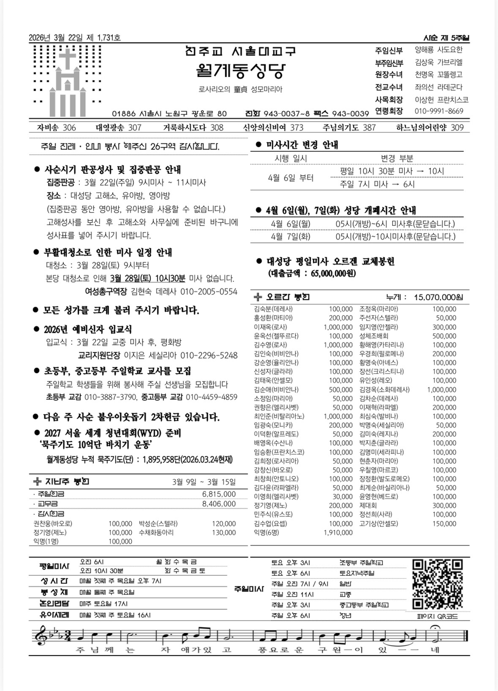2026-03-22일 사순 제5주일 본당주보 작성자홍보분과1|작성시간26.03.20|조회수317 목록 댓글 0 글자크기 작게가 글자크기 크게가 다음검색 현재 게시글 추가 기능 열기 북마크 신고 센터로 신고 댓글 댓글 0 댓글쓰기 답글쓰기 댓글 리스트
