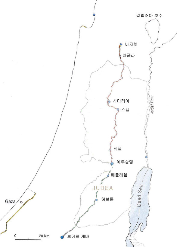구약성경에서 이스라엘 중앙 산악지대를 따라 이어지는 세바스티아(사마리아), 스켐, 실로, 베텔, 예루살렘, 베들레헴 그리고 헤브론에서 브에르 세바로 이어지는 길은 족장들의 숨결이 살아있는 중요한 성소이다.