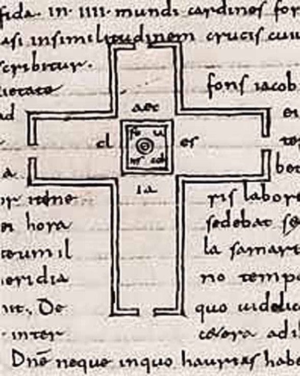 680년경에 성지순례를 한 프랑크족의 주교인 아르쿨프(Arculf)는 중요한 자료를 남겨 주었다. 히브리어로 스켐이라고 부르는 도시에 도착한 그는 세상의 네 곳을 가리키듯이 십자가 모양을 한 성당을 보았고 이 성당 모습을 스케치 하였다. 그는 ‘성당의 중심에는 사람들이 흔히 우물이라고 부르는 야곱의 샘(Spring)이 있는데 어느 날 정오쯤 여행을 하느라 피곤했던 주님께서 이곳에 앉으셨다.’ 우물물을 마신 아르쿨프는 우물의 깊이가 40큐빗(32m. 고대의 척도로 1 큐빗은 팔꿈치에서 가운데 손가락 끝까지의 43-53cm 길이)이라고 전한다.