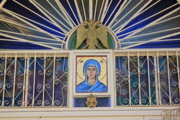빨간 지붕 아래에 비잔틴 시대의 모자이크가 보존되어 있다.
