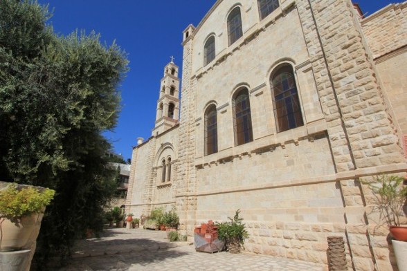 12세기 후반에 십자군들은 비잔틴 성당 터 위에 대성당 바실리카를 지어 베네딕도 수도원에 위탁하였다. 예루살렘의 왕 볼드윈 2세의 큰딸이자 예루살렘의 여왕(1131-1153)이었던 멜리산드(Melisende, 1105?1161.9.11)가 1152년 나블루스로 망명해 왔을 때 성당을 지을 수 있도록 지원하여 1175년 십자군 대성당이 지어졌지만 이 성당은 살라딘이 하틴의 전투에서 승리한 1187년 이후에 파괴 되었다. 십자군 시대의 정문은 예루살렘에 있는 무덤성당의 것과 유사했지만 1927년에 일어난 지진으로 모두 파괴되고 말았다.