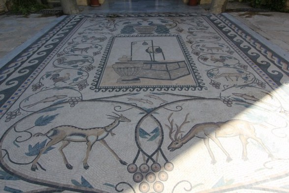 유적지는 보존 상태가 엉망이었기 때문에 비잔틴 시대의 모자이크 바닥의 일부는 현대 바실리카 외부의 앱스 동쪽에서만 볼 수 있다. 성당 밖에서 뒤쪽으로 돌아가면 모자이크를 볼 수 있다.