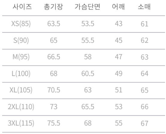 ※ 사이즈표는 참고용으로만 이용해 주시기 바랍니다.