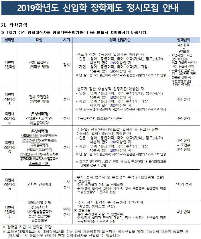 [필독공지]2019학년도 정시모집 신입생 장학금 선발기준 작성자LoveCAU|작성시간18.12.31|조회수205 목록 댓글 2 글자크기 작게가 글자크기 크게가 다음검색 현재 게시글 추가 기능 열기 북마크 공유하기 신고 센터로 신고 댓글 댓글 2 댓글쓰기 답글쓰기 댓글 리스트 삭제된 댓글입니다. 답댓글 작성자LoveCAU 작성자 본인 여부 작성자 | 작성시간 18.12.31 네 그렇습니다. 댓글 전체보기