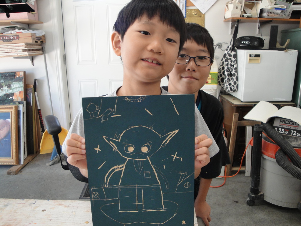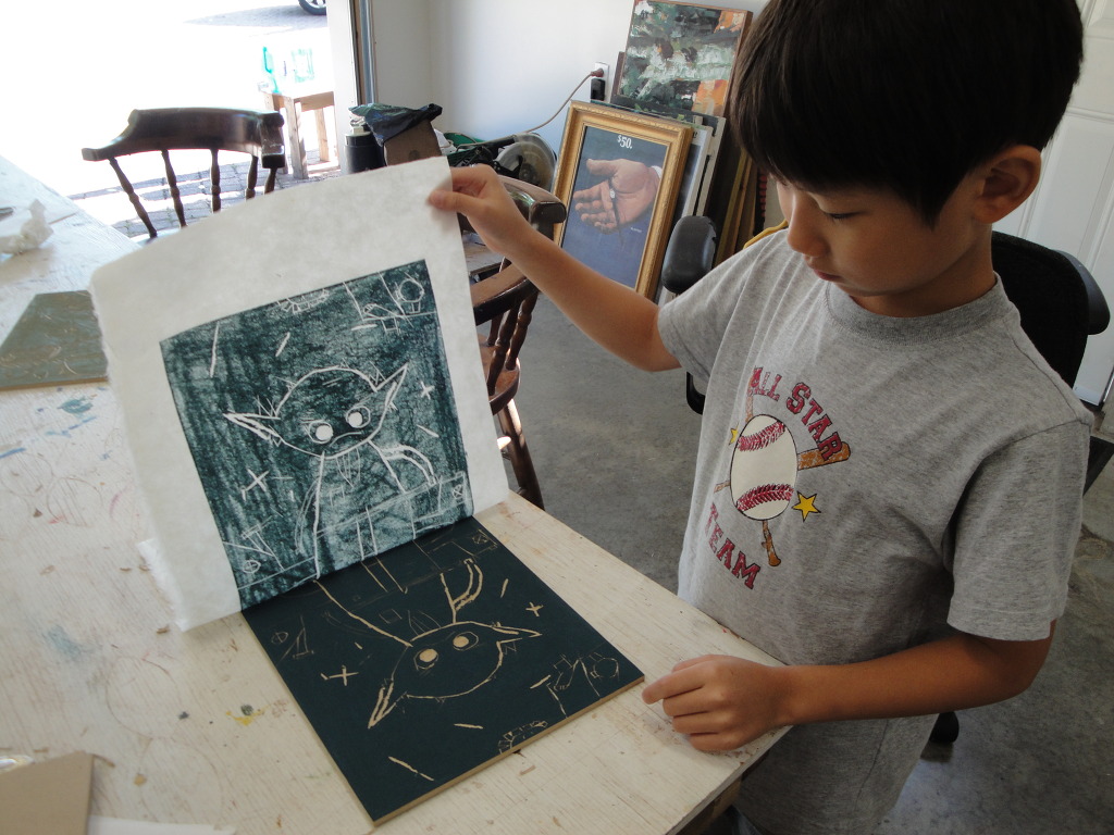 전날 팠던 판화도 찍고