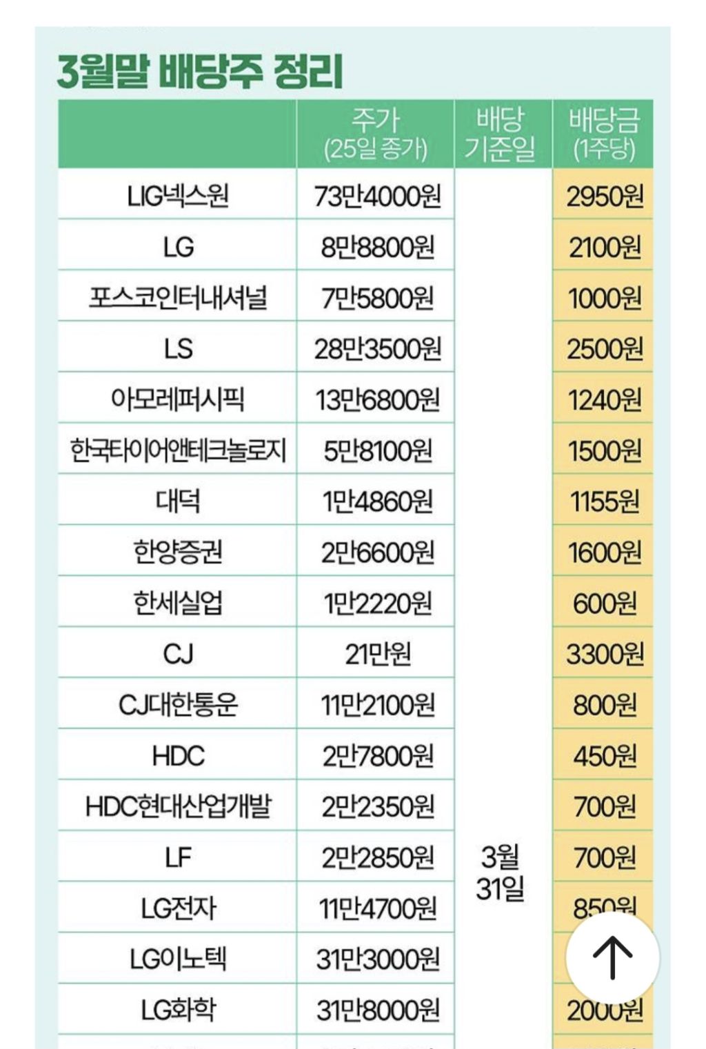 3月배당주 작성자SEJONG|작성시간26.03.26|조회수789 목록 댓글 2 글자크기 작게가 글자크기 크게가 다음검색 현재 게시글 추가 기능 열기 북마크 공유하기 신고 센터로 신고 댓글 댓글 2 댓글쓰기 답글쓰기 댓글 리스트 작성자해피말리 | 작성시간 26.03.27 감사합니다 작성자살롬 | 작성시간 26.03.30 감사합니다 댓글 전체보기